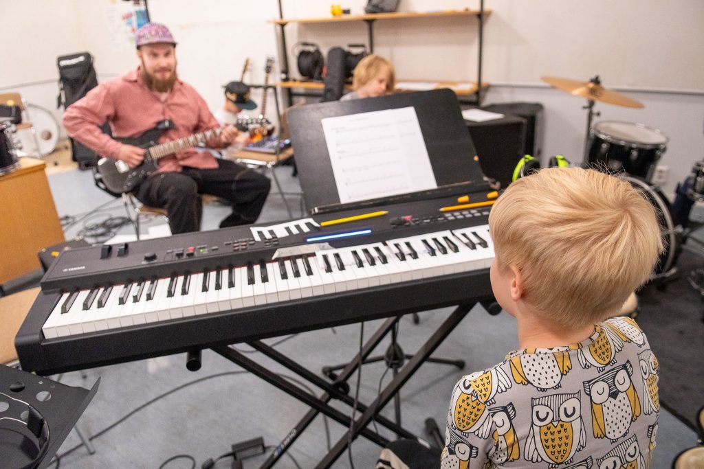 Bändikarusellissa 6–12-vuotiaat pääsevät rokkaamaan sähkökitaralla, bassolla, kosketinsoittimilla ja rummuilla vaihdellen soittimia. Aiempaa kokemusta tai omia soittimia ei tarvita! Bändikaruselli kokoontuu Mantulla ja sisältää 4 x 60 min opetusta ja huipentuu omaan esiintymiseen perjantaina 26. kesäkuuta. Bändikarusellia opettaa Riku Tuovinen.